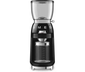 Стильна та функціональна електрична кавомолка SMEG CGF01BLEU чорного кольору. Оснащена конічними жорнами з нержавіючої сталі та 30 ступенями помелу для досягнення ідеального смаку вашої кави. Іконічний ретро-дизайн SMEG доповнить інтер’єр вашої кухні.