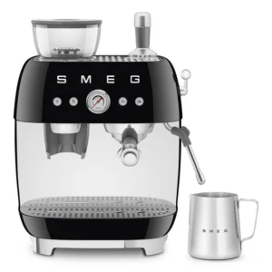 Насолоджуйтесь автентичним еспресо вдома з ріжковою кавоваркою SMEG EGF03BLEU чорного кольору з вбудованою кавомолкою. Конічні жорна, тиск 15 бар, система нагріву Thermoblock, манометр та професійний капучинатор дозволяють приготувати каву як бариста. І все це у неперевершеному ретро-дизайні SMEG.