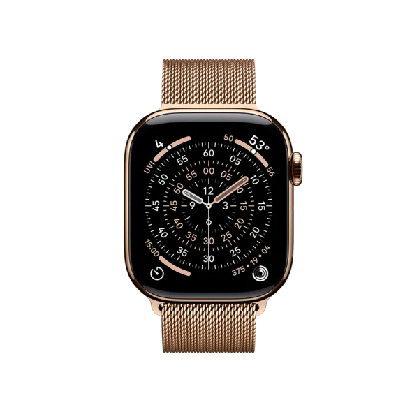 Смарт-годинник Apple Watch Series 11 GPS + Cellular 42mm Gold Tit. Case w. Gold Milanese Loop (MF8Y4) має золотий титановий корпус, елегантний браслет Gold Milanese Loop і підтримку стільникового зв’язку для дзвінків та інтернету без iPhone.