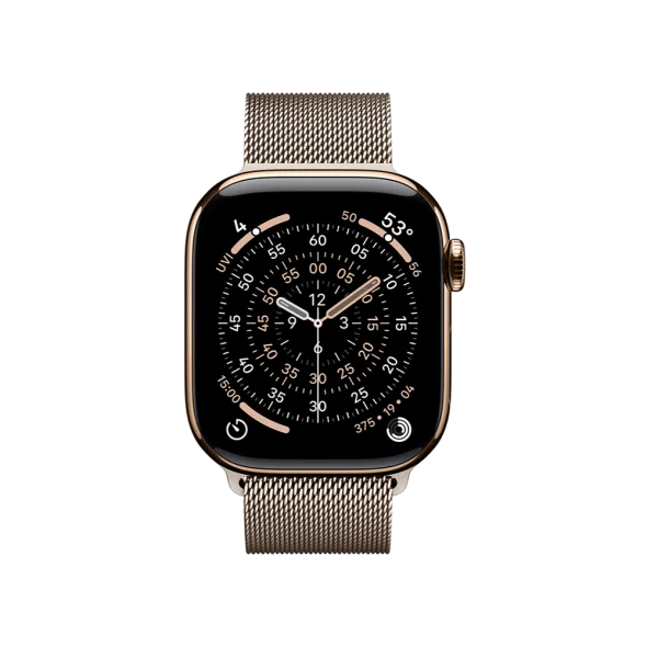 Смарт-годинник Apple Watch Series 11 GPS + Cellular 42mm Gold Tit. Case w. Natural Milanese Loop (MF9M4+MGHY4) поєднує розкішний корпус Gold Tit., браслет Natural Milanese Loop і всі функції Apple Watch.