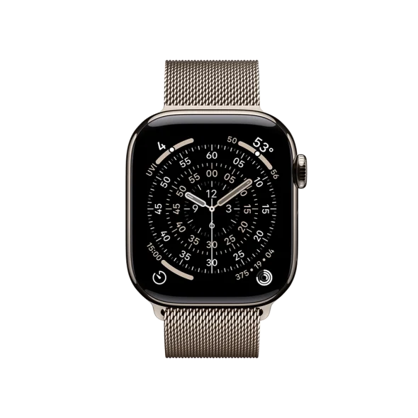 Смарт-годинник Apple Watch Series 11 GPS + Cellular 42mm Natural Tit. Case w. Natural Milanese Loop (MF8P4) поєднує витончений корпус Natural Titanium, браслет Natural Milanese Loop та функції моніторингу здоров’я.