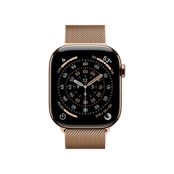 Смарт-годинник Apple Watch Series 11 GPS + Cellular 46mm Gold Tit. Case w. Gold Milanese Loop – M/L (MFD84) — преміальний годинник із браслетом Gold Milanese Loop M/L та повною підтримкою функцій Apple Watch.