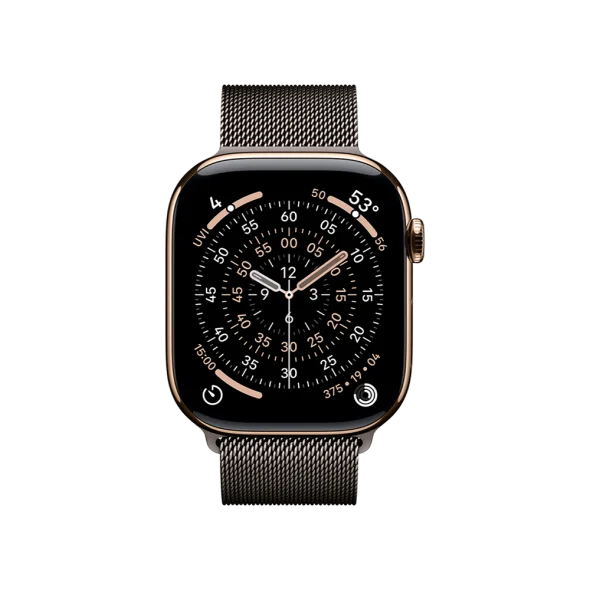 Смарт-годинник Apple Watch Series 11 GPS + Cellular 46mm Gold Tit. Case w. Slate Milanese Loop – M/L (MFC34+MGJ74) поєднує яскравий золотий корпус, браслет Slate Milanese Loop M/L та функції здоров’я й фітнесу.