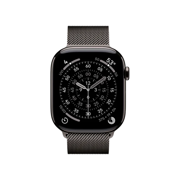 Смарт-годинник Apple Watch Series 11 GPS + Cellular 46mm Slate Tit. Case w. Slate Milanese Loop – S/M (MFD34) — преміальний годинник із титановим корпусом Slate, браслетом Milanese Loop S/M і підтримкою стільникового зв’язку.