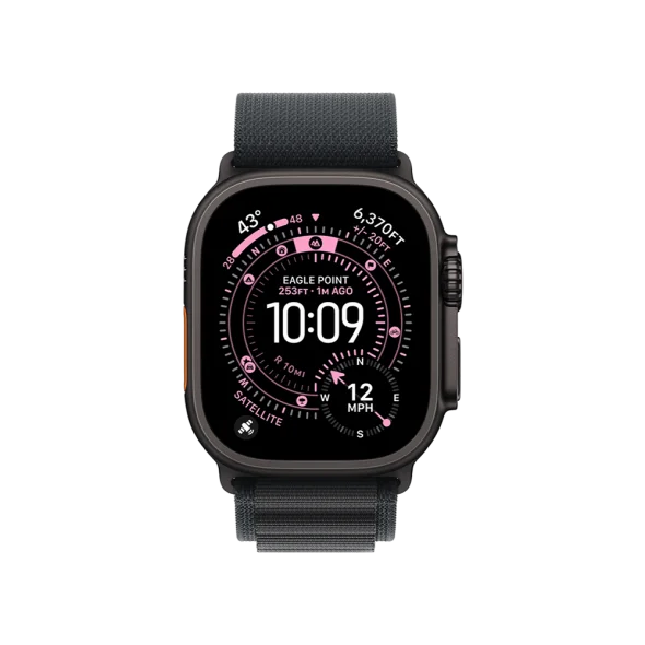 Смарт-годинник Apple Watch Ultra 3 GPS + Cellular 49mm Black Tit. Case w. Black Alpine Loop – Medium (MF0V4) має міцний титановий корпус, великий яскравий дисплей та ремінець Black Alpine Loop розміру Medium для активного використання у спорті й подорожах.