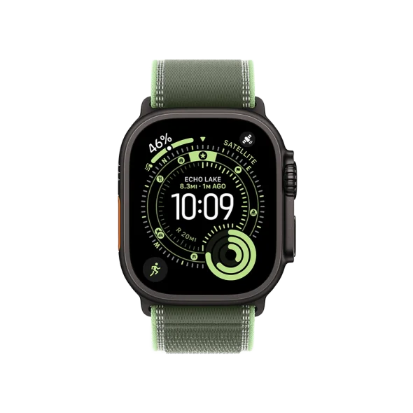 Смарт-годинник Apple Watch Ultra 3 GPS + Cellular 49mm Black Tit. Case w. Green/Neon Trail Loop – S/M (MF254+MG9N4) — спортивний годинник із ремінцем Green/Neon Trail Loop S/M, що підходить для бігу, трекінгу та щоденної активності.