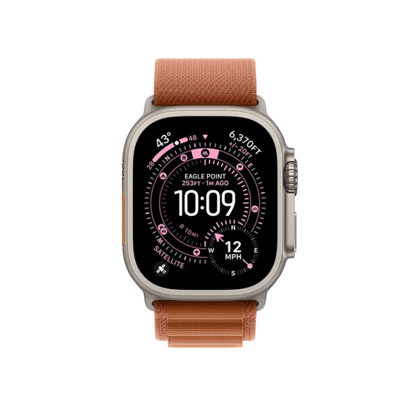Смарт-годинник Apple Watch Ultra 3 GPS + Cellular 49mm Natural Tit. Case w. Terra Cotta Alpine Loop – Small (MF1V4+MFTA4) має титановий корпус, просунуті можливості тренувань і ремінець Terra Cotta Alpine Loop розміру Small для надійної посадки.