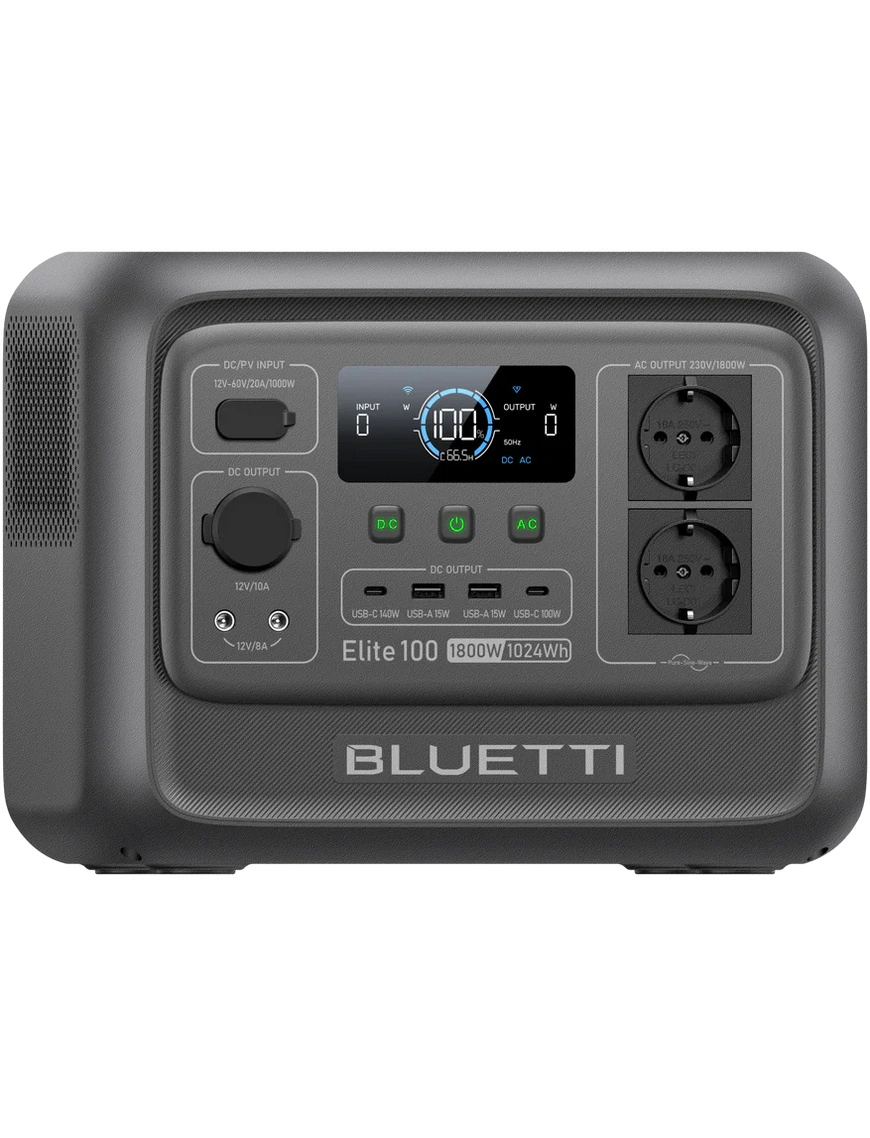 Зарядна станція BLUETTI Elite 100 V2 (P-EL100V2-EU-GY-BL-010) — це потужна портативна зарядна станція для дому, подорожей і роботи офлайн. Вона поєднує Ємність 1024 Вт·год, вихідна потужність 1800 Вт, акумулятор LiFePO4 для надійного живлення техніки.
